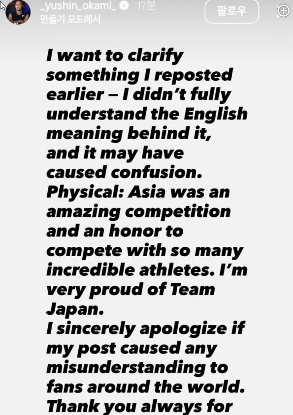 내 게시물로 인해 전세계 팬들에게 오해가 있었다면