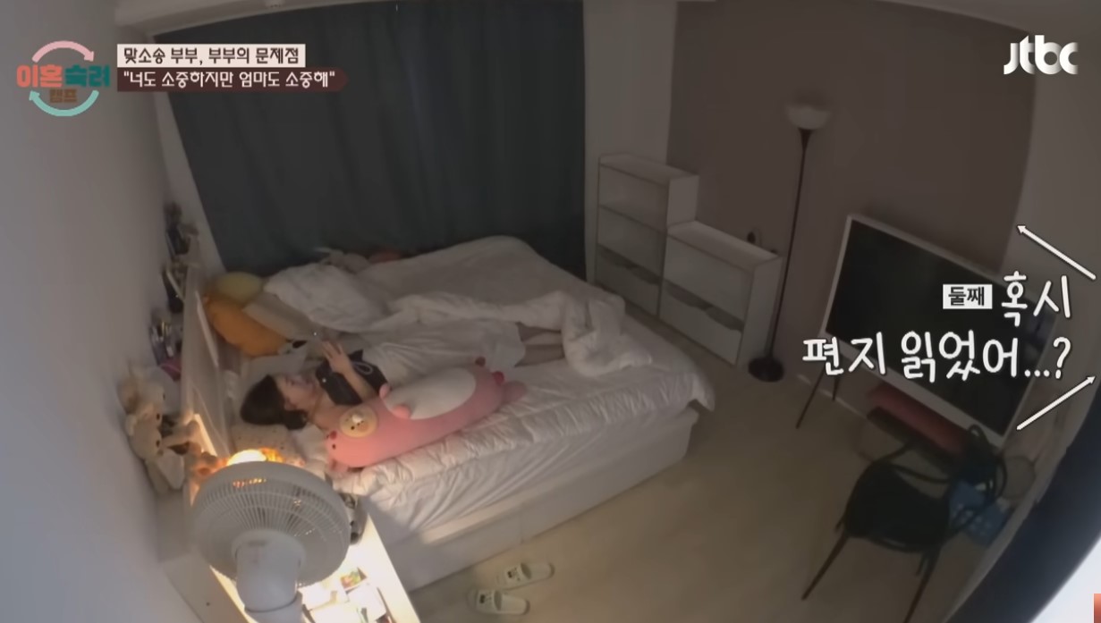 결국 엄마가 편지를 읽고 답장을 탁자위에 올려둠..